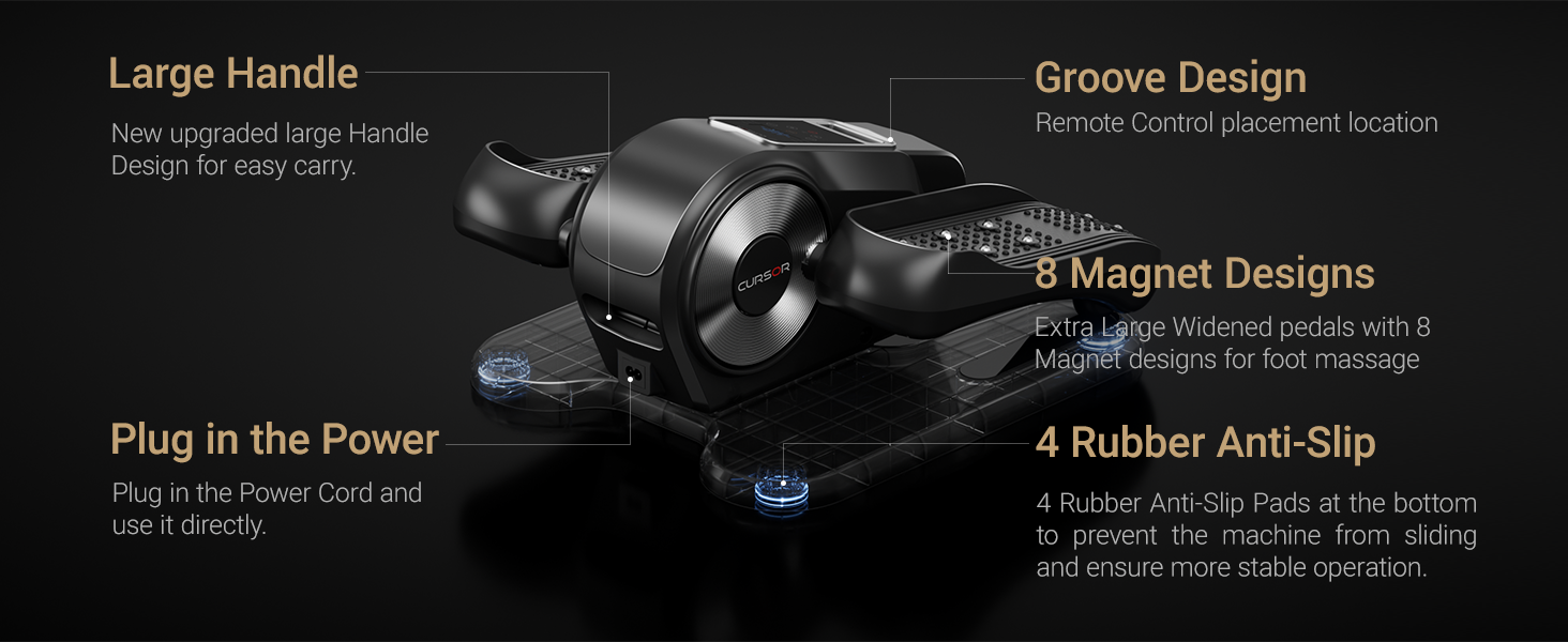 - 12 velocidades y 12 modos: La máquina elíptica CURSOR Fitness cuenta con 12 velocidades y 12 modos de entrenamiento, lo que ofrece diversas posibilidades para mejorar tu rutina de ejercicios. Ya sea que estés haciendo ejercicios de rehabilitación o fortaleciendo los músculos de las piernas y relajando las articulaciones de los pies, elige la velocidad y el modo que prefieras. Puedes usar la elíptica debajo del escritorio mientras ves la televisión, lees el periódico o trabajas.
