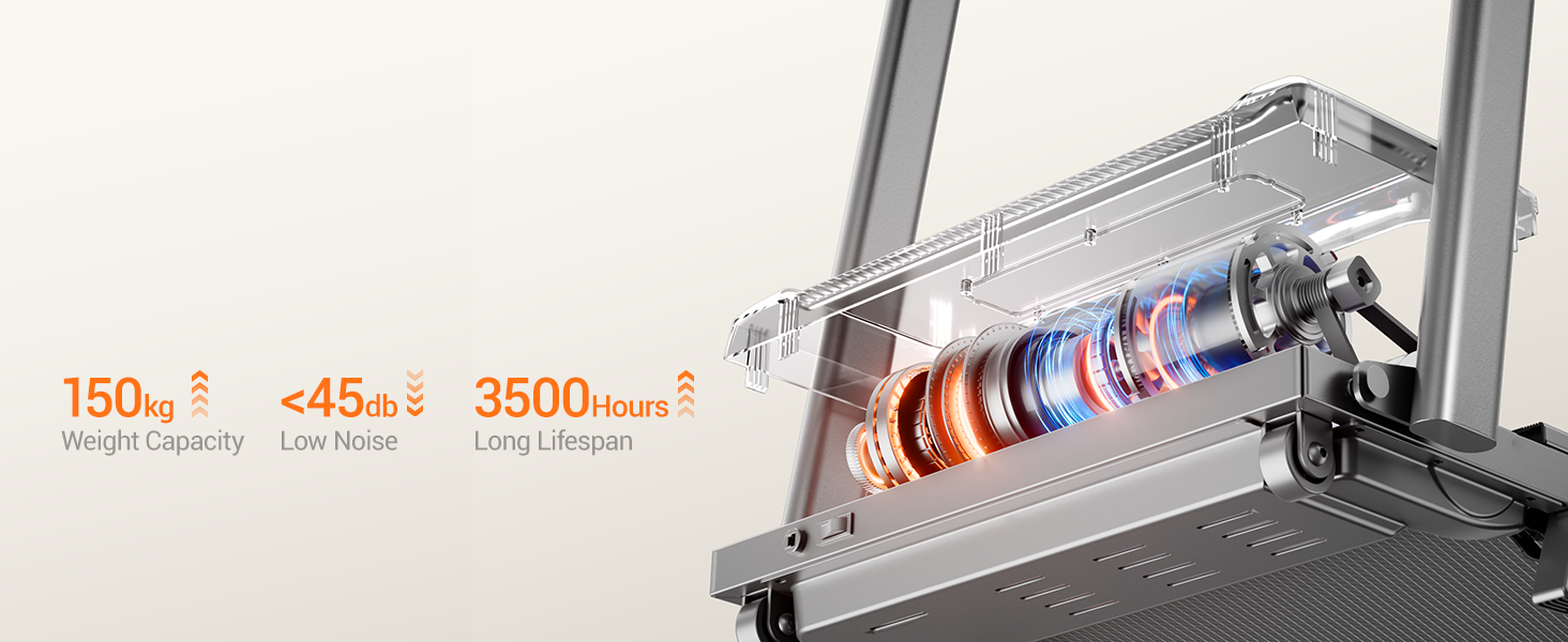 - 【Upgrade of the silent motor】: This folding treadmill is equipped with a state-of-the-art brushless motor. Compared to conventional brush motors, it is characterised by lower noise (<45 decibels), lower energy consumption (<0.5 kilowatt hours) and an extended service life of 8 to 10 years. Enjoy a quiet, economical and sustainable experience.